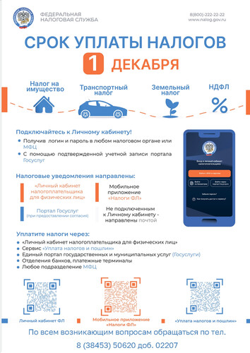 Межрайонная ИФНС России №9 по Кемеровской области-Кузбассу напоминает о необходимости уплаты имущественных налогов и налога на доходы физических лиц (НДФЛ).