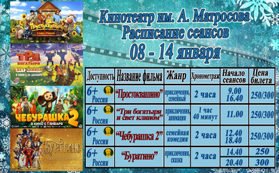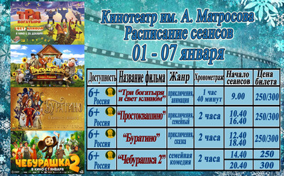 Уважаемые кинозрители, приближаются осенние каникулы, мы надеемся, что, не раздумывая долго, вы с родителями и своими друзьями захотите посмотреть премьеры, которые мы для вас приготовили!! |