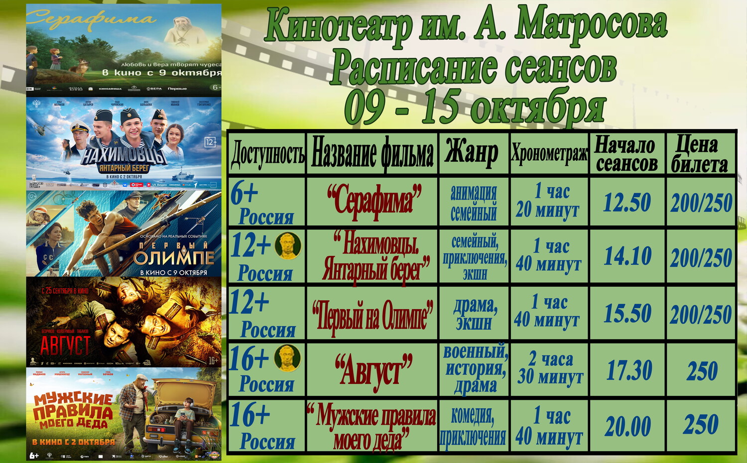 Уважаемые кинозрители, приближаются осенние каникулы, мы надеемся, что, не раздумывая долго, вы с родителями и своими друзьями захотите посмотреть премьеры, которые мы для вас приготовили!!