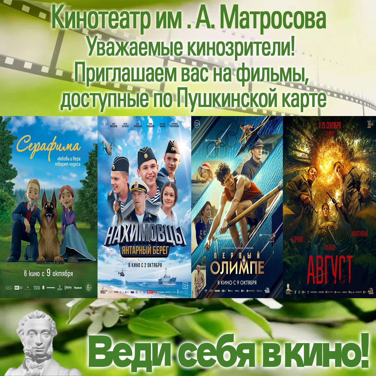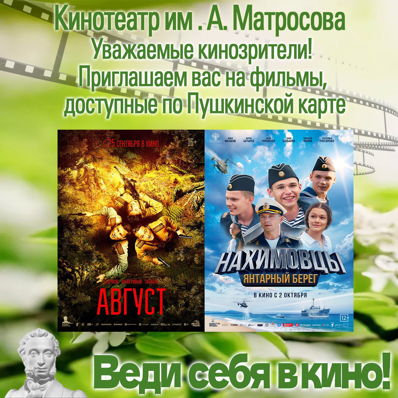 Напоминаем, что поход в кино станет для вас настоящим подарком, потому что вы можете оплатить его Пушкинской картой.