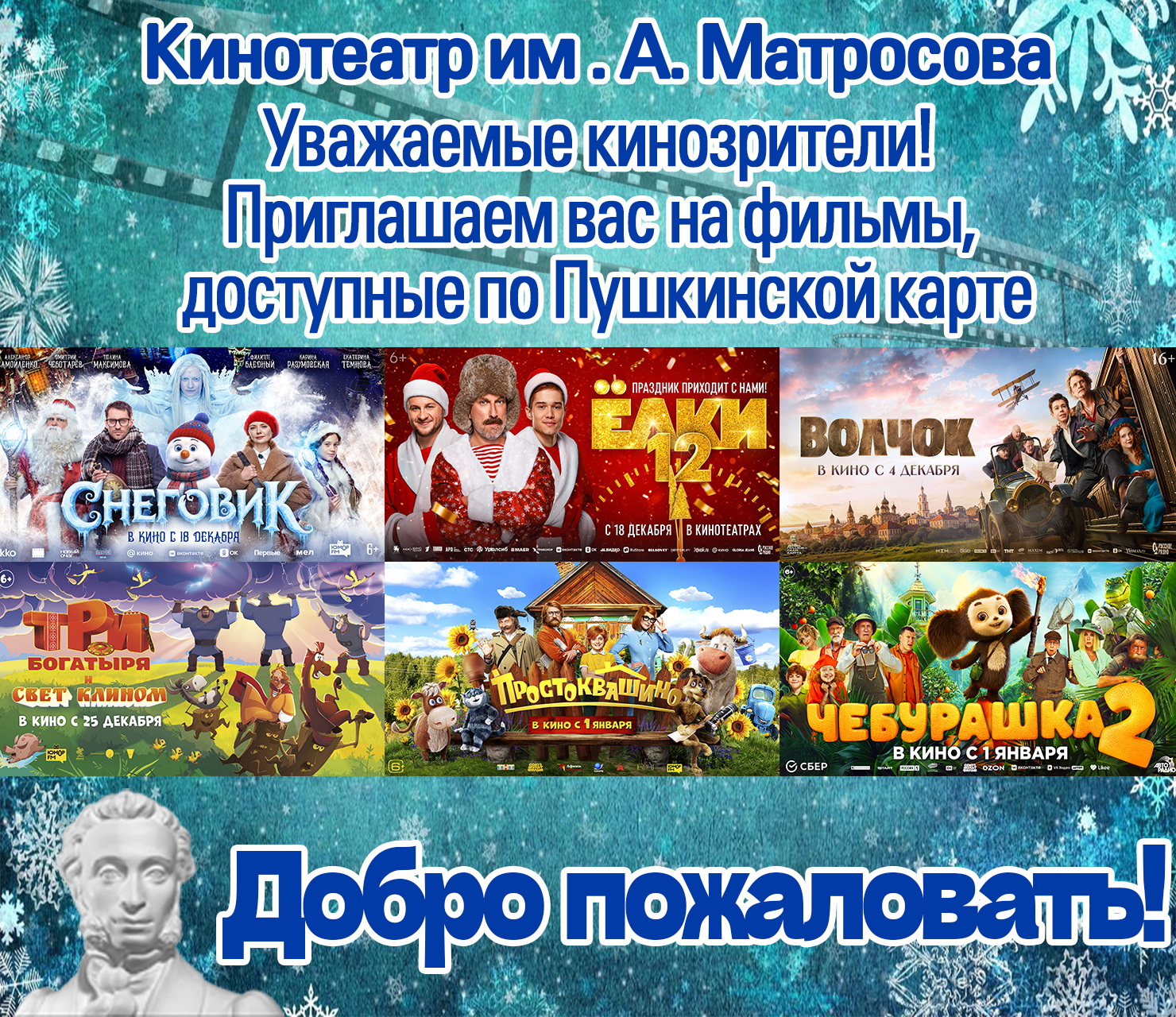Уважаемые кинозрители, приближаются осенние каникулы, мы надеемся, что, не раздумывая долго, вы с родителями и своими друзьями захотите посмотреть премьеры, которые мы для вас приготовили!! |