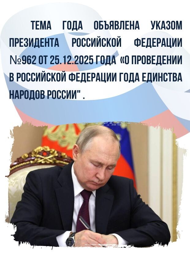 2026 ГОД - ГОД ЕДИНСТВА НАРОДОВ РОССИИ.