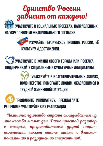 Участвуйте в мероприятиях, продвигайте идеи дружбы народов, ведь в единстве народов - сила России!